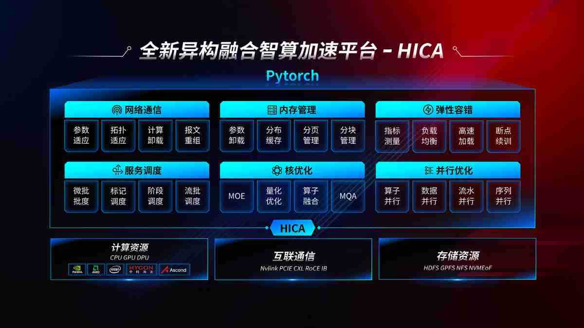 通过自研的服务层、、中间适配层、、以及调度编排算法,,,采用数据并行、、、模型并行等多种并行方式,,,,把并行计算任务进行有效的分解,,,,使其分别由相应的软件栈和算力资源来承接。。。当GPU资源变化,,,,HICA可以实时动态调度计算子任务并调整模型拓扑和架构,,,,以充分聚合各种算力资源。。。。